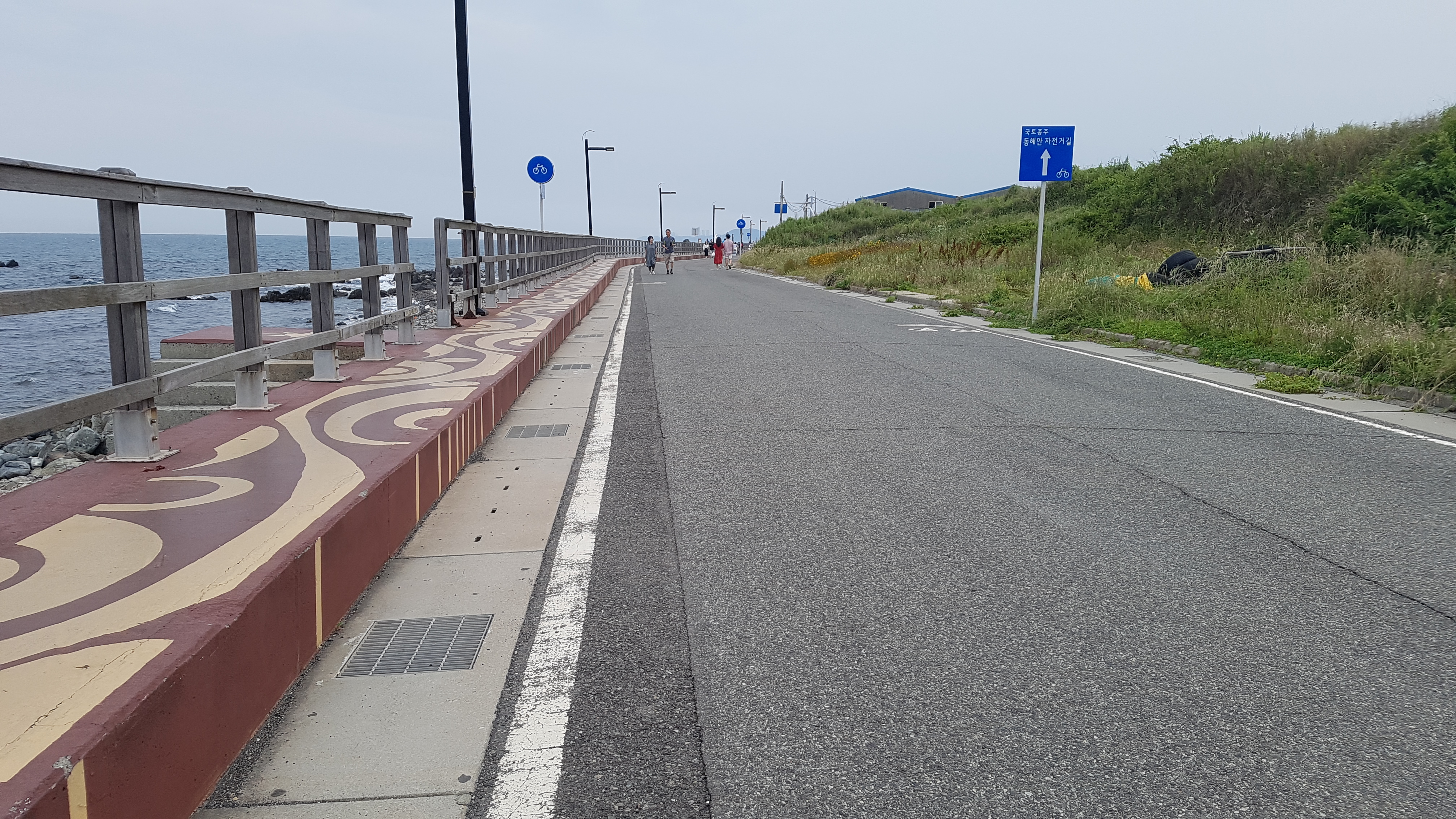 저희 집엔 4살, 5살 아이들이 있고, 킥보드 타는 걸 좋아해서 차에 항상 킥보드를 가지고 다니는데, 간절곶 소망우체통 앞 길은 오르막 내리막이 많고, 사람들도 많이 다녀서 아이들이 킥보드 타기에는 힘들더라구요. 거기 말고 남쪽으로 해안길 따라 쭉 내려가다보면 큰 내리막길 끝에는 계속 평지라서 아이들이 킥보드 타기에 너무 좋더라구요. 아래 지도 위치 참고 바랍니다.