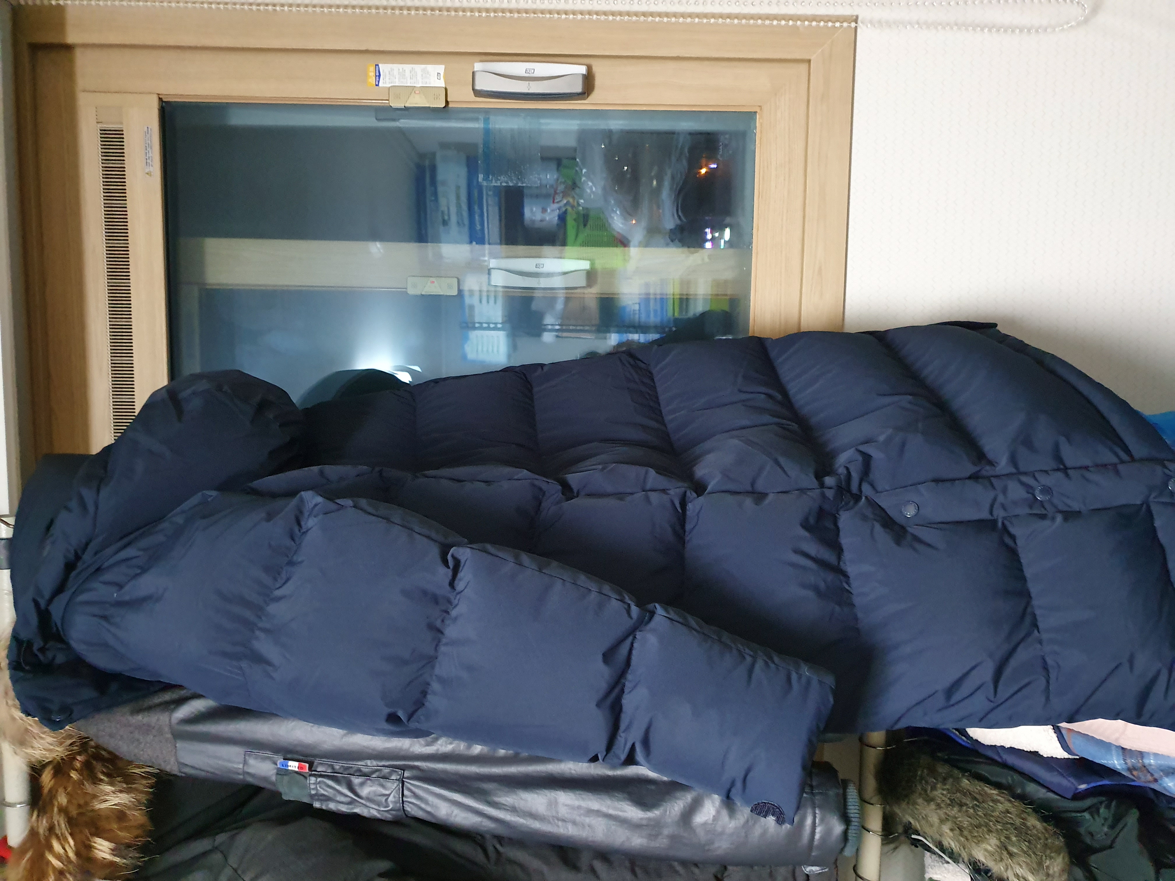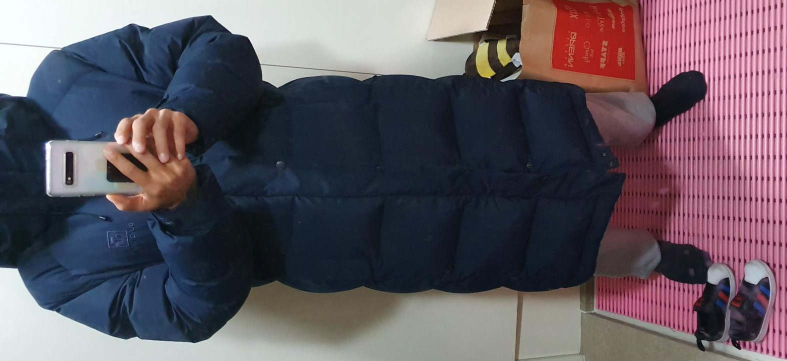 롱패딩이고, 우모량이 꽤 많음에도 불구하고 입어보면 옷이 굉장히 가벼운 느낌입니다.