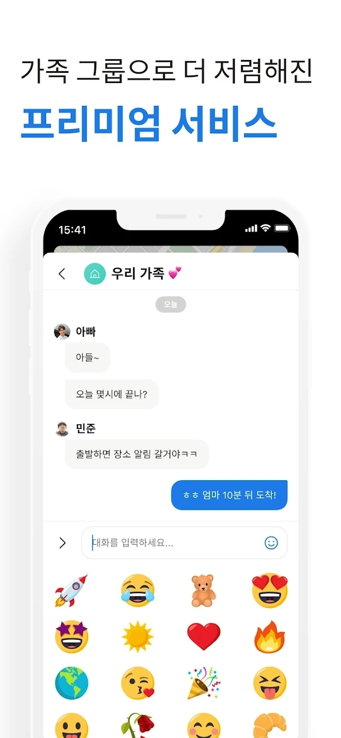 • 가족 채팅 - 아이들에게 스티커를 보내서 칭찬해준다면 떨어져 있어도 아이가 행복해 할 거예요!