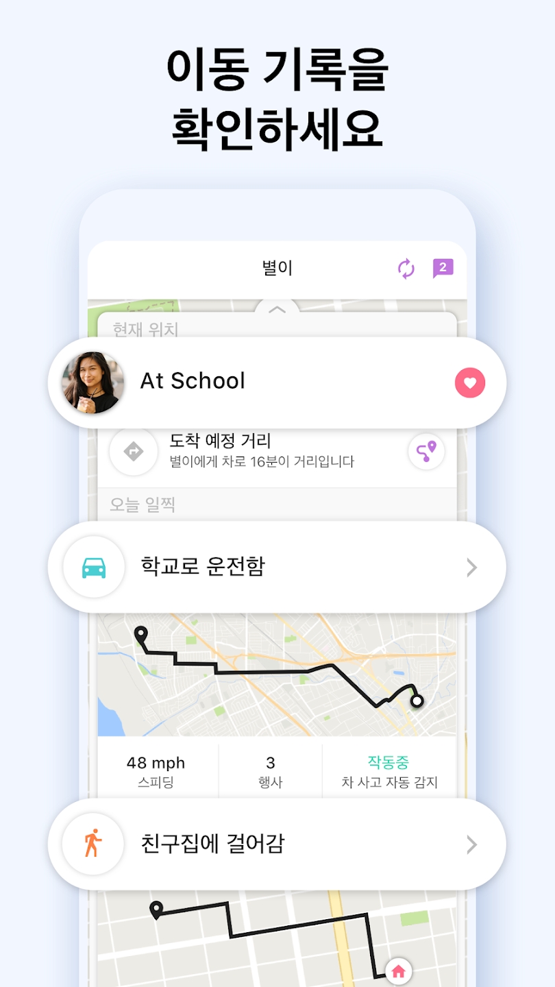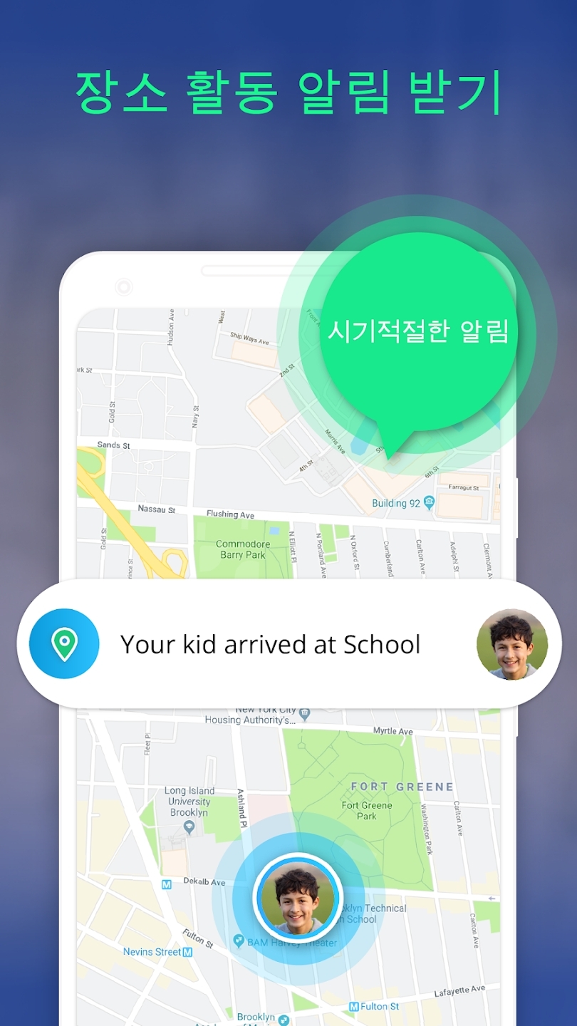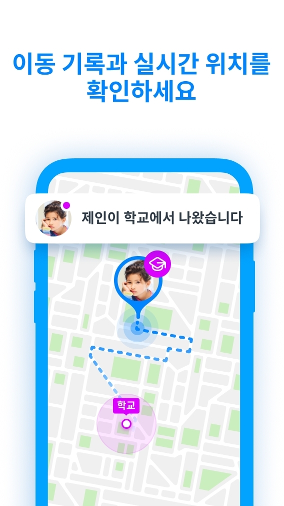 • 보안 관리 - 자녀가 학교 잘 도착했는지 확인하세요. 학교에 도착했을 때, 집에 돌아 왔을 때, 또 설정만 하면 추가적인 활동들에 대한 알림을 받아 안심할 수 있습니다.