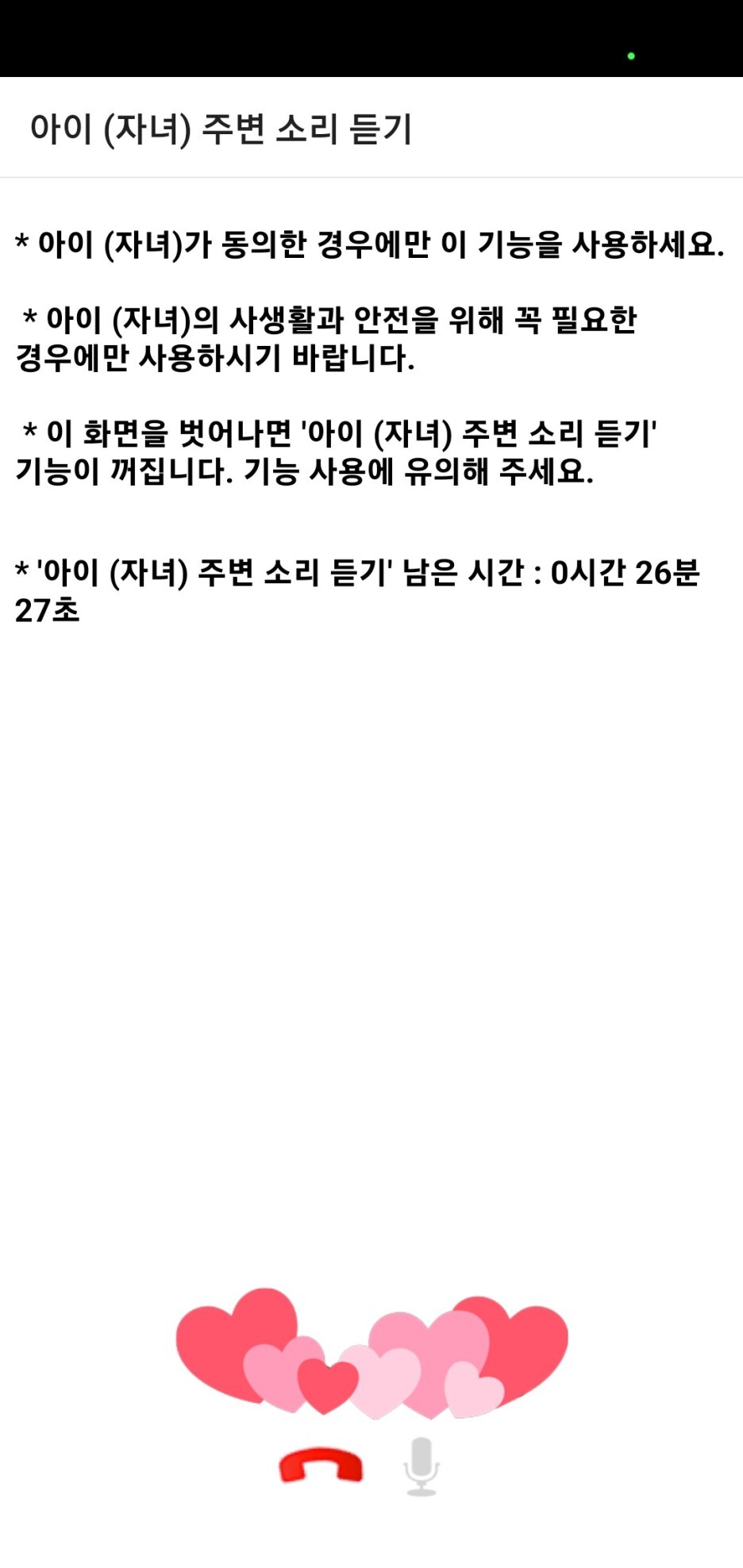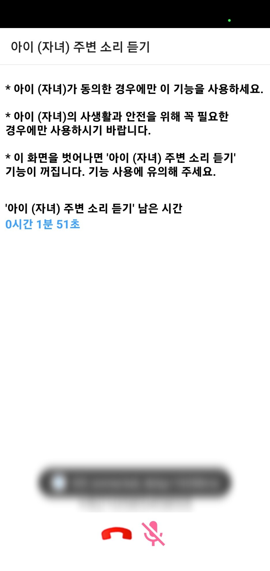 • 주변 소리 자녀와 연락이 되지 않을 때 주변 소리를 들어서 혹시 해로운 환경에 있지 않은지 확인해 보세요.